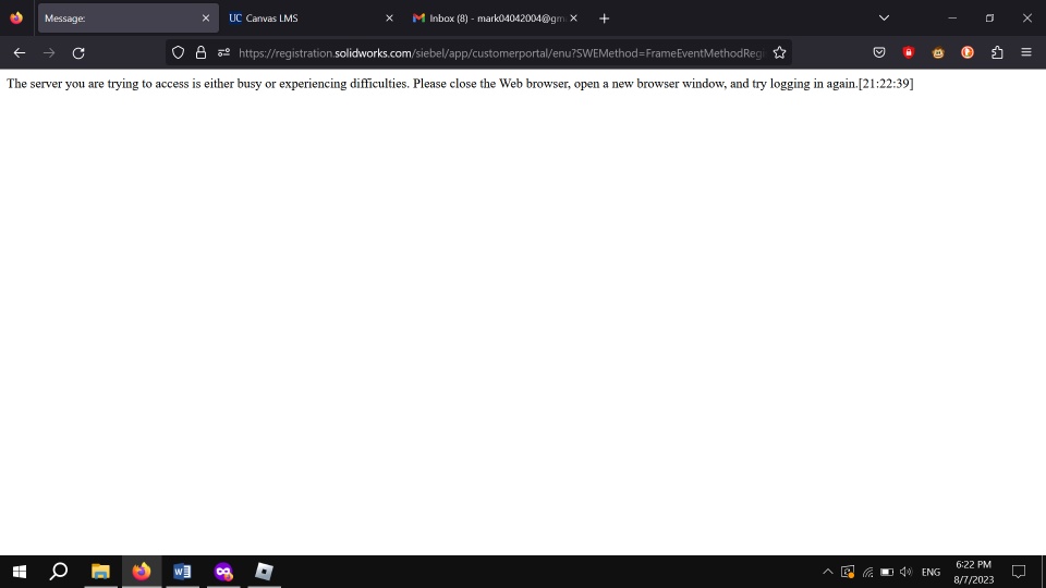 I have tried to access mySOLIDWORKS ID account to verify my product keys but every singular time I try to login it responds with: