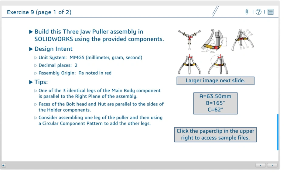Hi there, im currently working on the CSWA Practice Exercises. For the exercises "CSWA Assemblies Practice Exercises" as well as "CSWA Additional Tools Practice Exercises – Part 2" i need certain files (provided components). Does anybody know where i can download or find those? I have the SOLIDWORKS Student Edition Desktop. Thank you in advance.