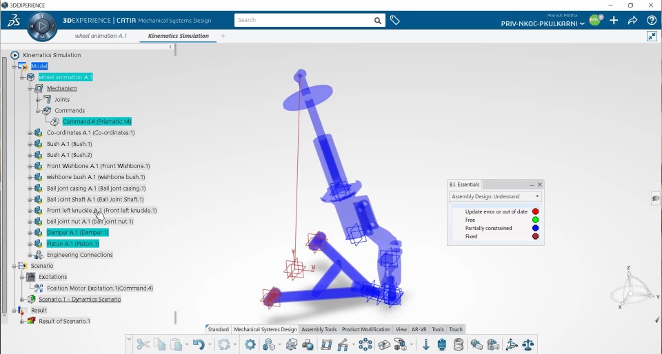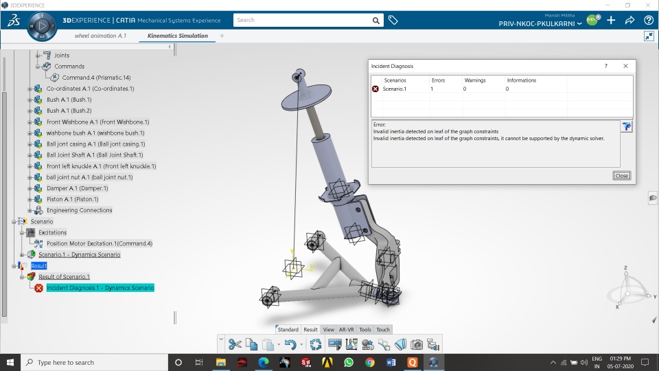 I have done a wheel assembly design with all the engineering connections while doing Kinematic simulation there is an error related to the degree of freedom, is there any solution for it. I have attached one small video plz see