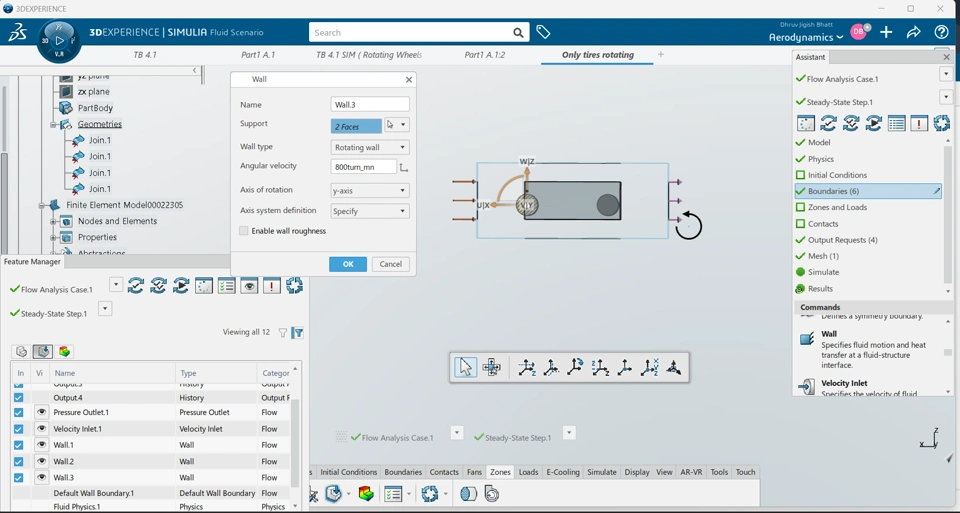 This what i am getting when considering wheels as rotating wall , can someone please tell me what am i doing wrong and how can i rotate wheels . Will rotating walls will do or we will have to consider wheels as rotating zone and if rotating zone is to be considered how to do it because when i tried doing it simulation didn't even initiate and 3ds solver stopped .