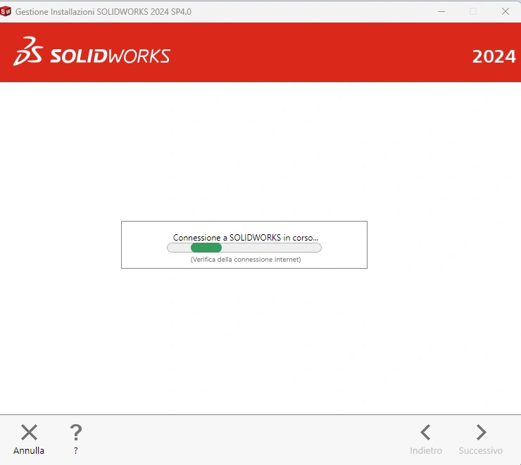I'm trying to install the software, but the process is stuck on this screen. What can I do? Could someone help me to understand the problem?