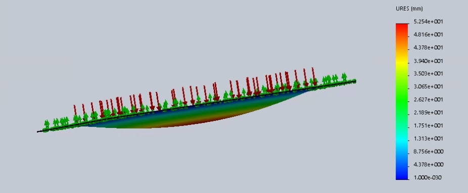 I'm trying to do this by a NonLinear simulation, and im having extremely big displacements but I'm not near a high stress value that breaks the panel.