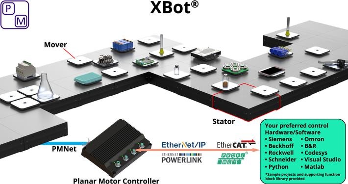 Can anyone propose me the apps that I should use in order to simulate the movement of maglev motors on the table, and later add robots that will execute the operations on parts that are delivered on these "movers"?