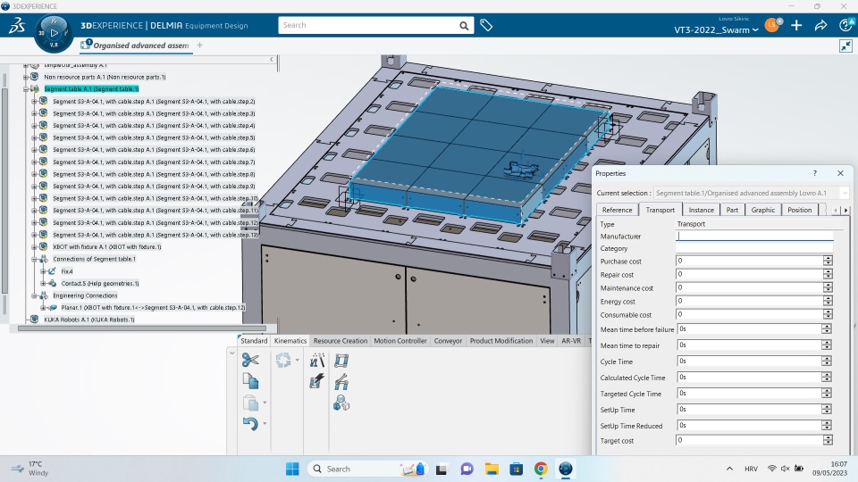 What is the easiest way to do this (just to define the trajectory, speed and stops)? I defined the segments (table) and xbot as transport resource, or should it be something else?