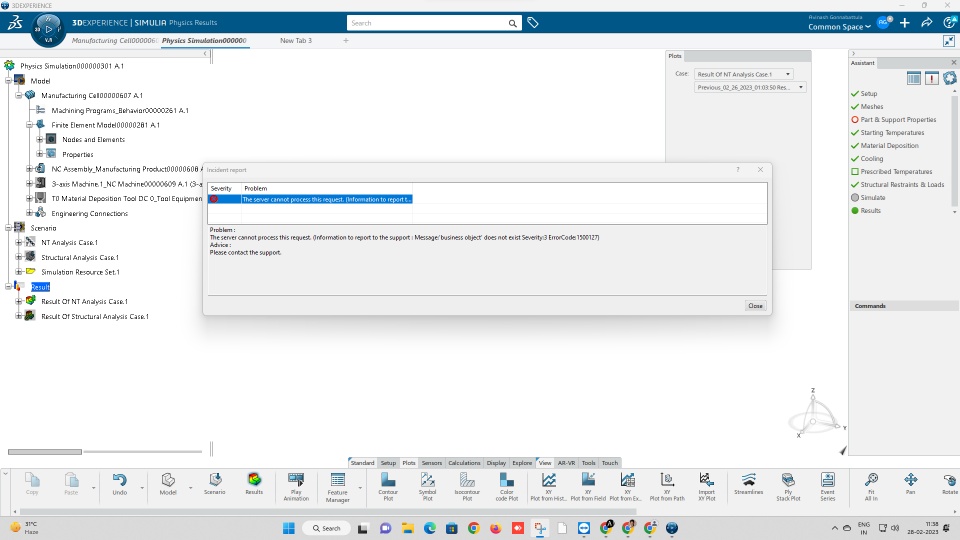 I am not able to see the results of the simulation as the software 3DEXPERIENCE is closing on its own after the simulation is done.Also regarding saving the results on the local file, I am getting an error as shown in the Figure. Can someone help with this?