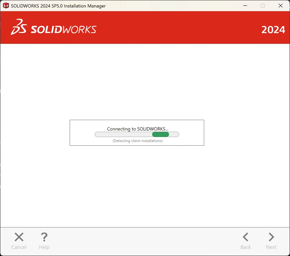 I am installing SolidWorks 2024 through my university's license (Purdue University), but the installation manager keeps getting stuck on this (shown in picture). Has anyone come across this problem before?