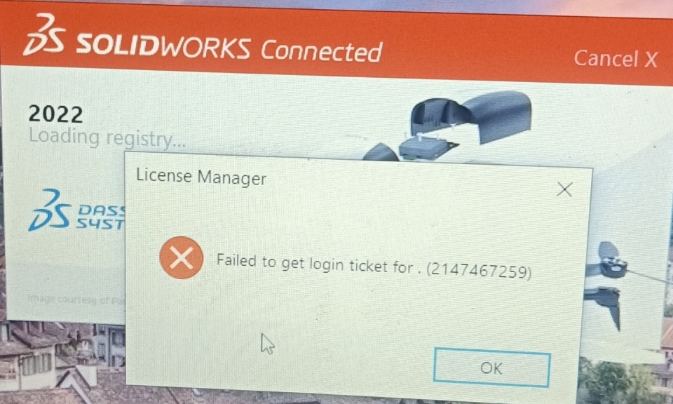 While lunching solidworks connected error comes "failed to get login ticket .(2147467259)" how to solve this error please answer