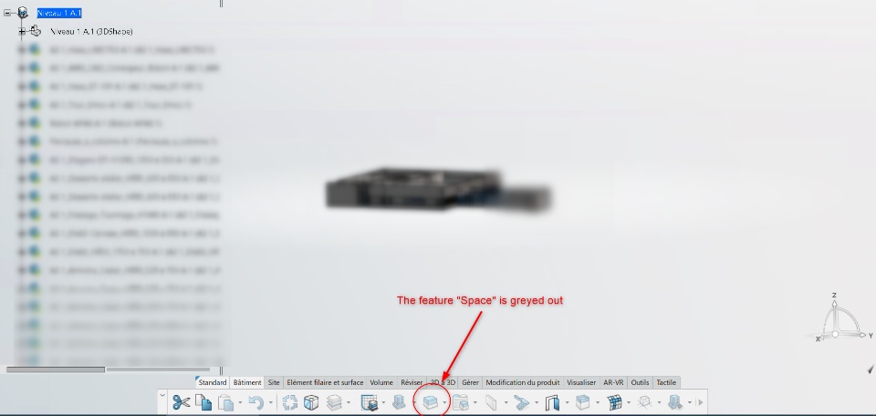 We want to create a "Space" to work inside a single room of the building (isolated) but we cannot click on the feature 'Space'. Do you know how to resolve this ?