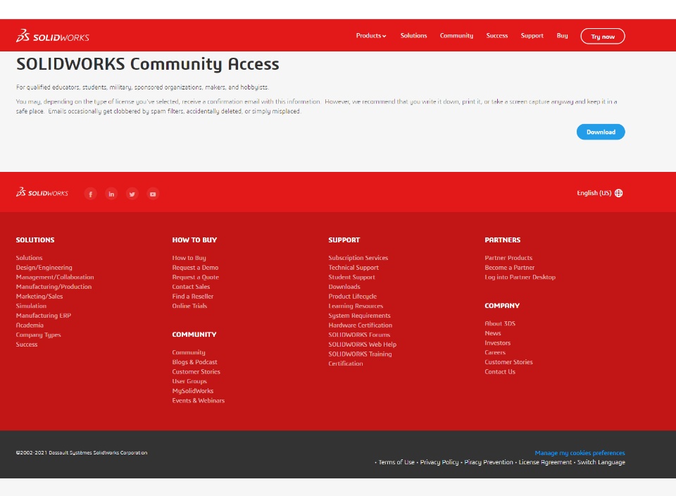 My school has given me the code to download the solidworks education edition but when I get to the page where you click the download button nothing works and i have no idea why.