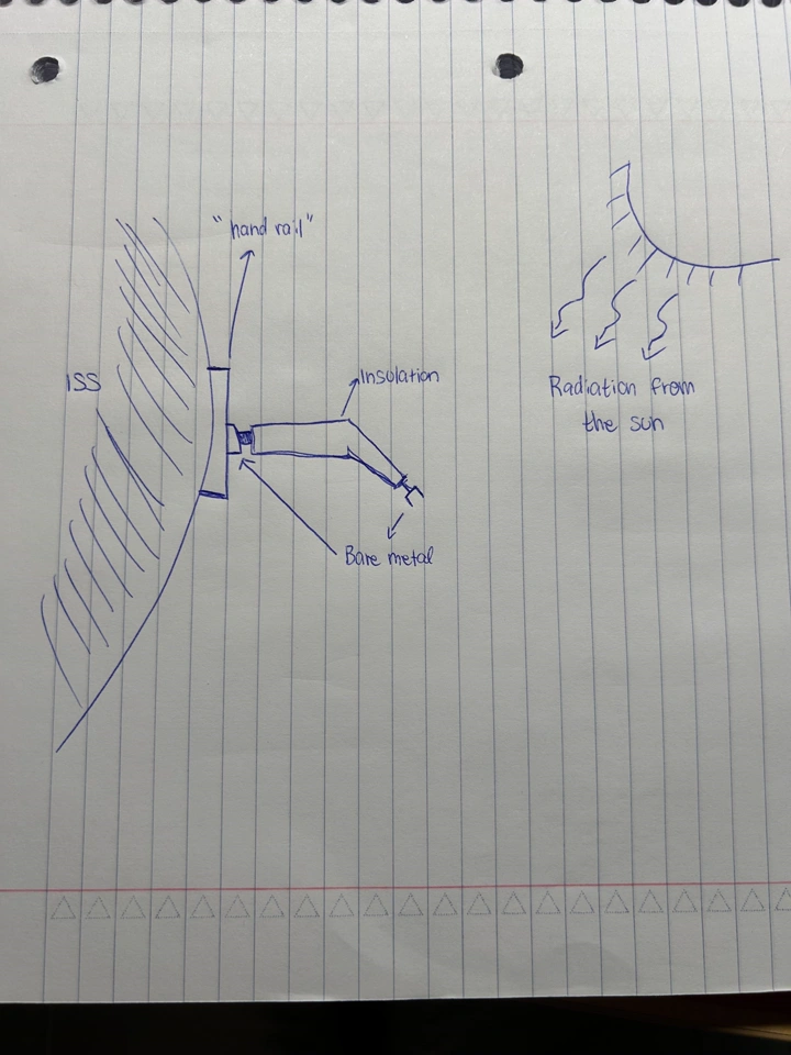 I am currently working on a project about designing a robotic arm for space. I have a license for the "Simulation Engineer Pack (U2U)" and am looking to run a thermal simulation to verify insulation thickness over critical internal components of the robotic arm. I have attached a sketch of the situation I would like to simulate. This arm is attached on the exterior of the space station on a handrail used by astronauts during spacewalks. On both free ends is "exposed" metal, therefore there is some conduction happening through the metal to metal contact there. In addition, there is heat radiation coming from the sun, and I have values calculated for the emissivity expected. There is some heat generated by motors/internal components that needs to be dissipated as well... Are there any tutorials I can follow for a similar setup to what I have using packages I have access to? And is there any advice on how to set the thermal conditions or heat transfer methods expected in this scenario? Any help on getting started is greatly appreciated.