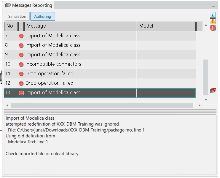 I am following the course "CATIA Dymola Behavior Modeling Essentials" and in one of the exercises I had to import a modelica file which was provided in the course. When I try to import it, I repeatedly get the following error. Please help me resolve this issue.