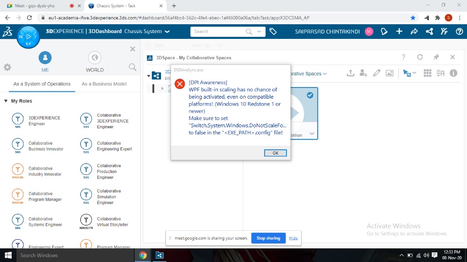 while opening 3d experience drive it pops up this message how to resolve it.
