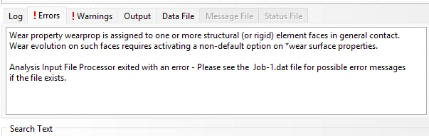 *Wear property "wear" is assigned to one or more structural (or rigid) element faces in general contact. Wear evolution on such faces requires activating a non-default option on wear surface properties.