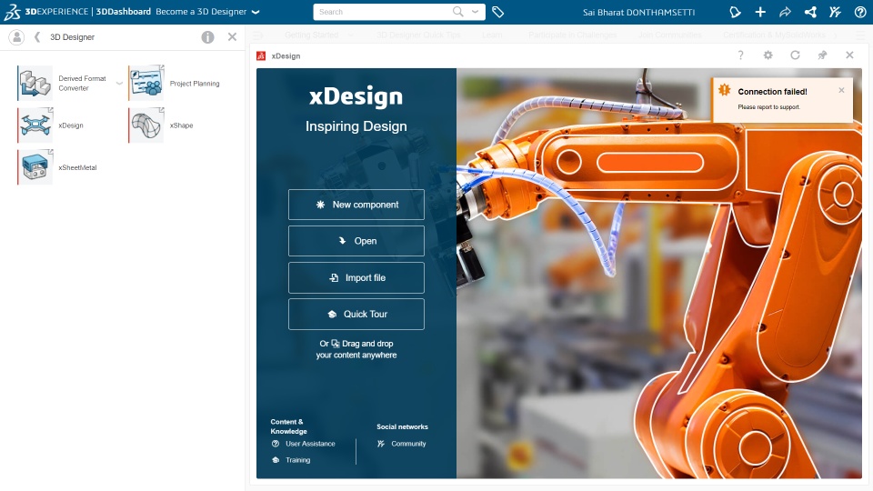 xDesign isn't connecting even after I create space and dashboard. I don't ln know the reason why it is failing to connect. Please help me in resolving the issue
