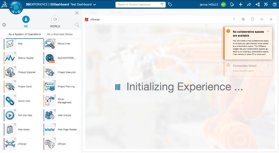 Hi all. I’m new to the 3DExperience platform and I just received access for FIRST Tech Challenge through the 3Ds challenge sponsorship program. Because of this, my dashboard was set up for me with the apps I need for my competition, however, I’m having trouble getting XDesign to load, it gives me error messages saying: connection failed, contact support and that I need to create a new collaborative space which I can’t seem to do either. Is there a way to create a new collaborative space without the administrator role? After the errors appear, the app perpetually “loads” and never finishes initializing. I’ve attached a screenshot of my error, any help would be much appreciated.