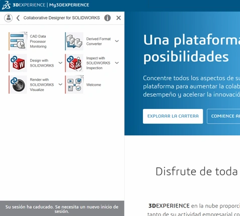 I would like to share the solution to a problem I had while installing the 3DEXPERIENCE Design with SOLIDWORKS application. I couldn't install this app because of the message "Your session has expired. A new login is required." when it didn't. So, it was solved by clicking on an app like 3DDashboard, 3DSwym or anything that opens a new tab. Then from the new tab click on Compass -> Design with SOLIDWORKS and it will launch successfully and will not display the message "Your session has expired. A new login is required."