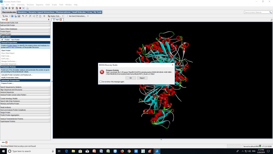 Error in energy minimization of protein and ligandWe have DS 2017 R2 in our lab. Now we have faced this problem during minimization of protein and ligand. Beside we are not able to perform docking and their jobs.