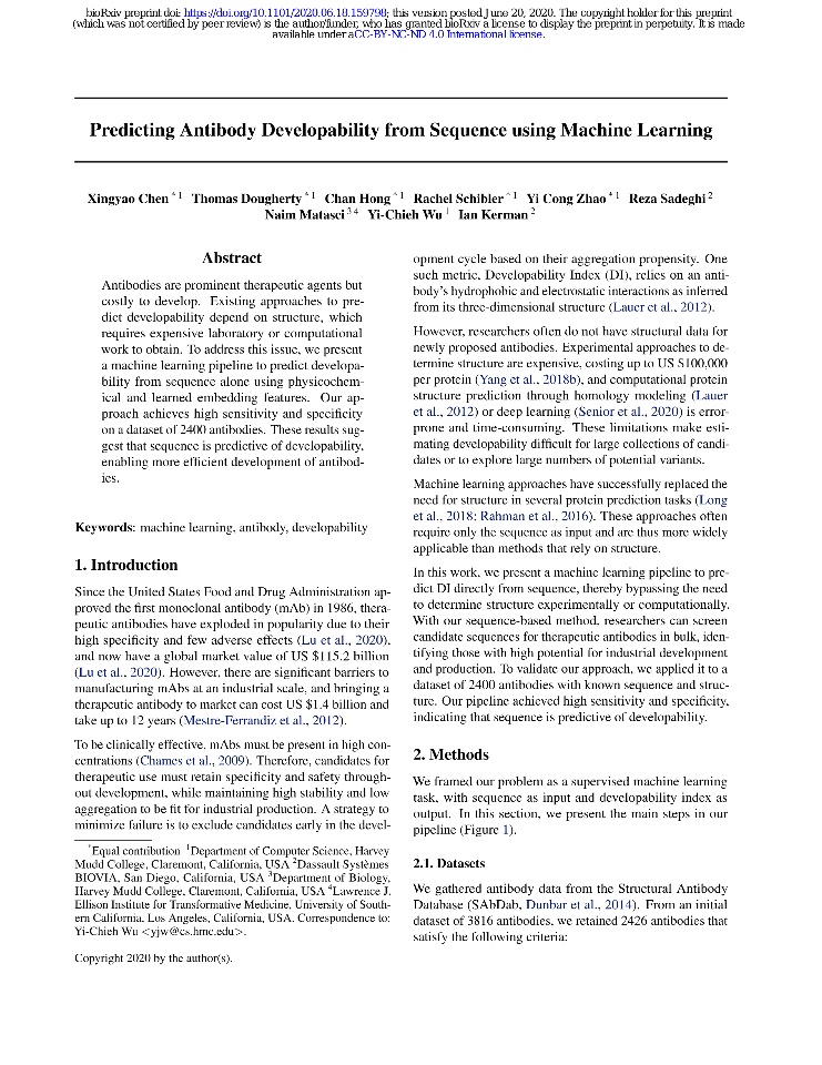 Btw, BIOVIA preprinted a paper called Predicting Antibody Developability from Sequence using Machine Learning in biorxiv, does it release protocol? I can't find any test protocol in this paper. Thank you again.