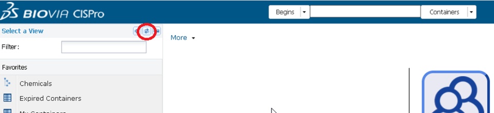 In the top right hand corner of the View Selector there are three small buttons. The middle button (shown below) is refresh. If this action does not correctly refresh the View Selector then log out of CISPro and clear the browser cache.