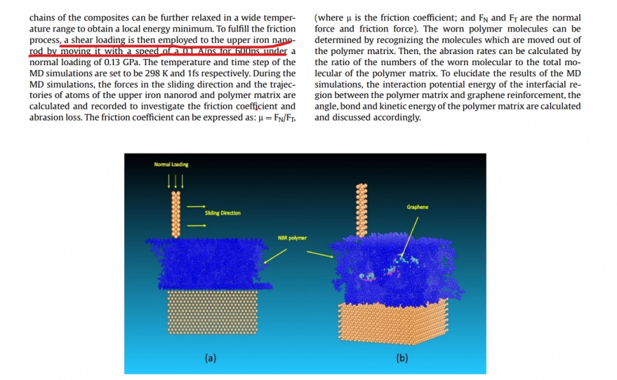 I'm trying to learn the wear conditions of interface between polymer and metal. The top and bottom layers are metal atom. The middle layer is polymer atom. Some researchers have published paper on Carbon. However, they don't explain how to add a displacement on the metal atom of the top layer. His unit is nm/ps, which is related to simulation time(steptime, set in the software). If I use the confined shear calculation in the Forcite, the bottom layer can not be fixed. Could you tell me how to add a displacement related to time or a shear stress on the top layer atoms, without a motion of the bottom layer atoms? Thank you so much.