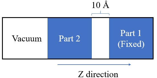 I build a layer structure consisting of two parts, in which part 1 is fixed and part 2 moves towards it along z direction. The distance between two parts is 10Å.