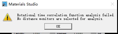 Then I create a distance for molecule D through measure/change tool and use this .xsd file as a pattern document to define a new set F. Rotational time correlation function analysis is then carried out for set F, but the same error occurs.