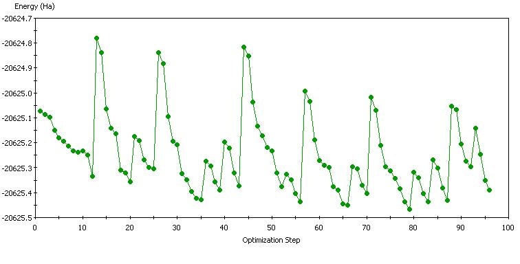 I am using DMol3 to optimize a crystal structure. The energy curve is like this: