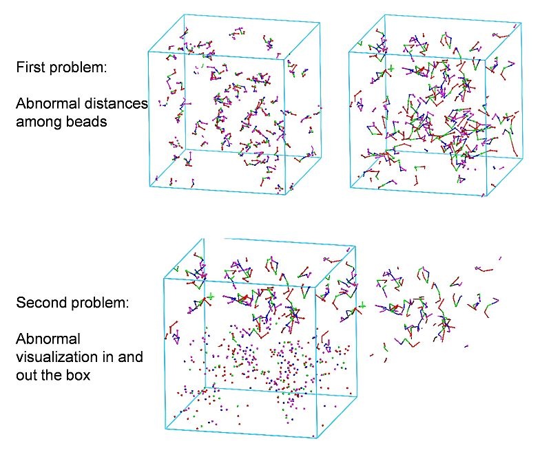 1. with the version 4.1, when I start a new job, at the very beginning of the simulation the beads are extremely close. The beads will soon relax during the minimization. Since it never happened with the previous versions, I wonder if everything is ok. See the attached file for a demonstration.