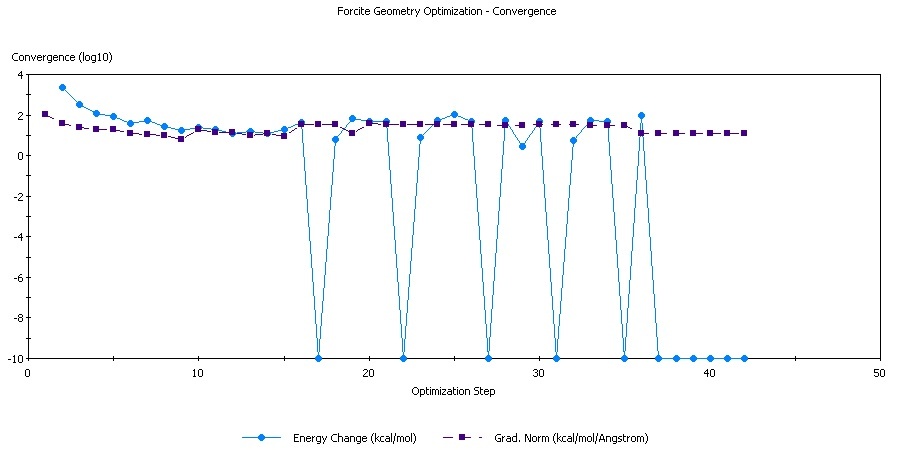But I have troubles to meet the convergence criteria when I'm doing geometry optimization for the mineral layer. I tried two different ways, I tried to cleave the surface first then relax the surface (by fixing the bulk atoms), and tried to optimize the mineral layer first then cleave the surface, in both case, the geometry optimization "successfully completed" with warnings: