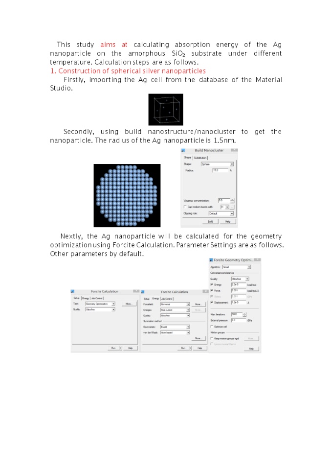 HiThe whole detail calculate parameter ,process, result and the problem are shown in the accessory.The Ag nanoparticle still fly away form the surface.I am very wish to receive your letter.Thank you very much!Best regards
