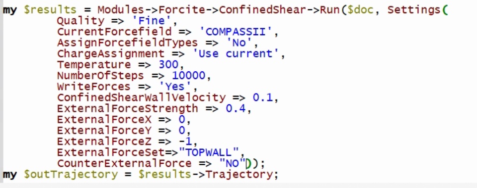 I would like to ask a question about applying external force during Confined Shear Task. I read the manual, and it says the atoms in both top and bottom walls are only allowed to fluctuate around equilibrium positions during shear process. Does that mean if I add en external force on, let's say, the top wall by using Externalforce command in Perl, which is shown in the screenshot, no matter how big the external force is, the atoms in the top wall would not move in a large distance. They will still fluctuate around equilibrium positions, right? I found some of the literature analyze tribological performance through this way, and I doubt its rationality. Can anyone give me some ideas about this issue? Is it a valid way to apply normal force while doing confined shear? Thank you very much!