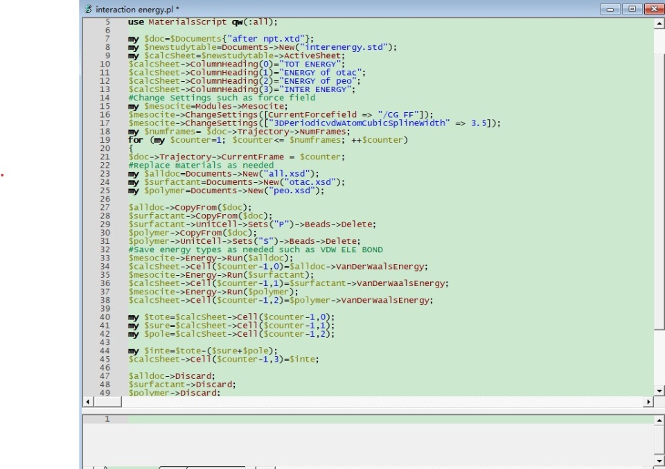 I use the script to calculate the solute energy in the solution system. The idea of the script is to take the solute in the original xtd file as a set, extract it separately and save as a new trajectory, then calculate the energy by using mesocite/Energy. However, all beads except set were deleted in the extraction process. (instead of existing but not participating in the calculation). I am not sure whether such extraction method is reasonable. If not, what should I do.