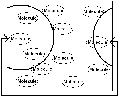 I'm trying to calculate the radial distribution function (RDF) between a set of polymer centroids (in solution) over time to try to understand if they're aggregating or not. For simplicity I have made the following diagram not showing centroids or the solvent molecules. Consider the dark line around the left most molecule a user defined interaction cut-off.