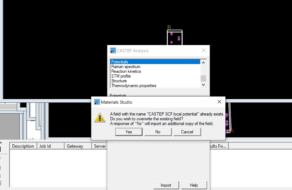 How to tackle this Error in Material Studio "field with CASTEP scf local potential already exist"? I am calculating work function through CASTEP material studio, when i click on the import button to import potential file. This error appears. "field with CASTEP scf local potential already exist".