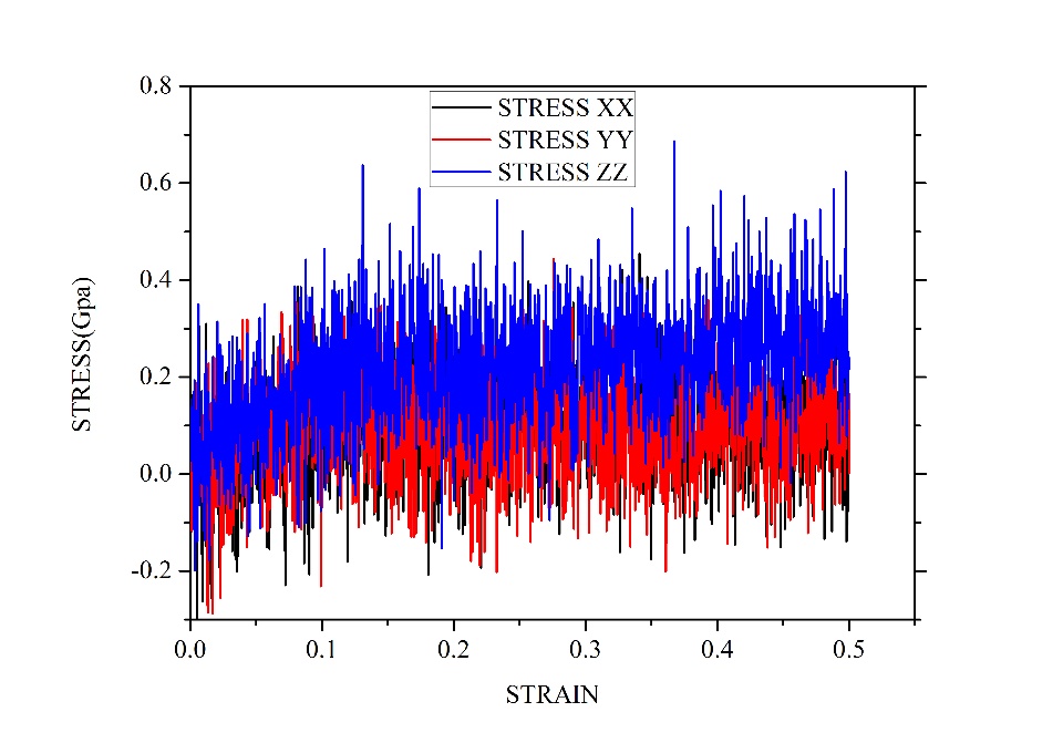 I used the script of Stephen “Strain a system and calculate stress” to study the stress-strain curve of polymer under uniaxial tension.