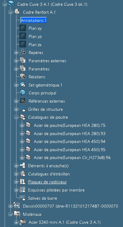 2) Je n'arrive pas à sortir de nomenclature des sous éléments poutres/solives/plaque d'une pièce réalisé à partir de catalogues de poutres/étrésillon/solive... du module Civil Structures Design.