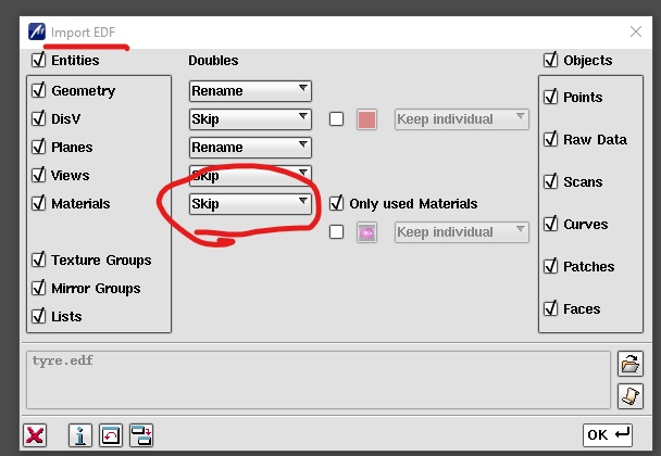 Hello, I wanted to follow up on the "EDF" question I was asked after the ICEM Surf 2024 What's New presentation earlier today. Specifically do we offer the "Skip" material option when we import EDF files similar to ICEMDB and Catia files now?