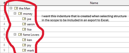 Is there a way to export a table from Cameo Systems modeler version 2022x R2 and get the indenture to transfer into excel? How does the tool handle the indenture? Can it be replicated with a script?