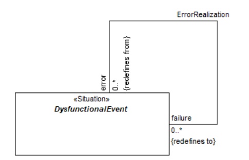 how make this happened in magic draw? ,any situation is a core library ,and dysfunctional event is a general library,i need to redefine the inherit attribute "to"&"from",but couldn't find the way to make this redefine attribute to show like this figure with association called “Error Realization”