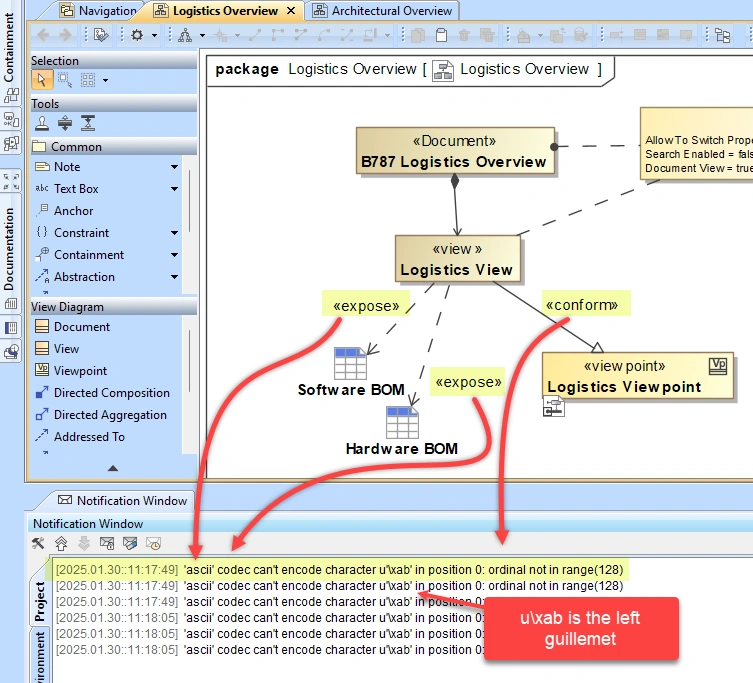 The display of stereotype guillemets on my diagrams provoke "warning" messages in the notification window. What can I do to stop the messages?