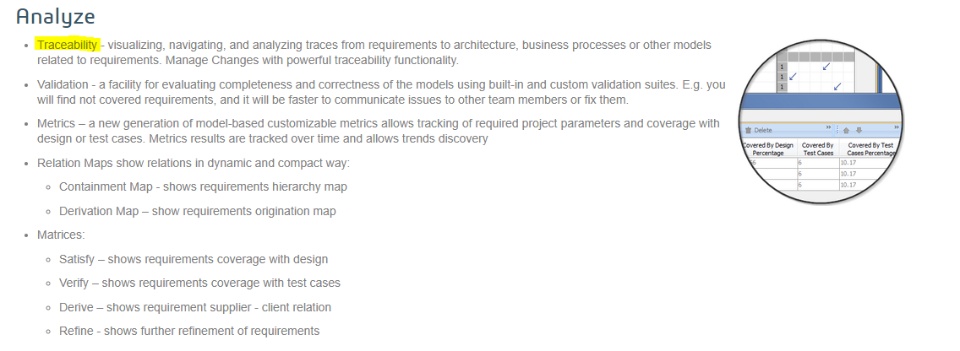 1) Are there any videos or demos available that show examples of how Cameo Requirements Modeler can use traceability across diagrams? For example, if something changes in diagram X that is also used in diagram Y (all within the same project) will I be able to notice because they both have traceability to the same requirement. I'm basically asking for examples of what's highlighted in the provided image from: Cameo Requirements Modeler Plugin - CATIA - Dassault Systèmes® (3ds.com)