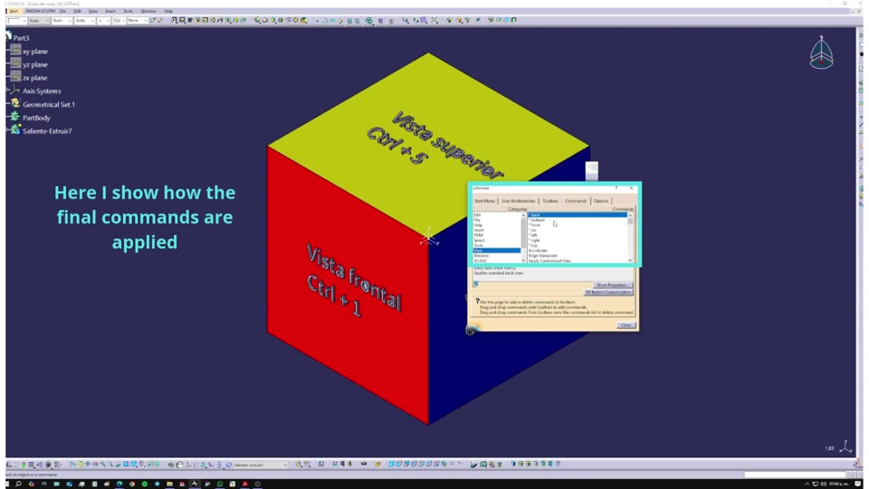 Hello CATIA users, a few weeks ago I saw a video of the great @MT where he used commands to be able to position your piece in the view you want (Front, Right, Top). As a SolidWorks and CATIA user it was difficult for me to use only the view bar instead of commands like in solidworks.