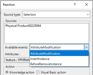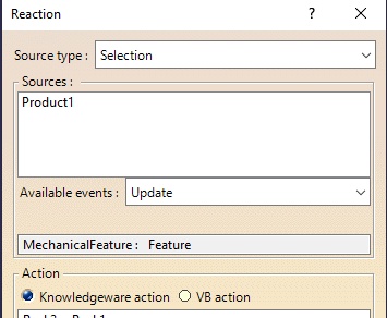 But in 3DEX CATIA, when you attempt to do the same thing, the "Update" event is not available. Setting the source type to "Owner" doesn't work either because the Owner is (as far as I can see) the Relations node, not the product itself.