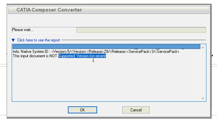 Catia R29 file version conversion doesn't work in CATIA Composer.