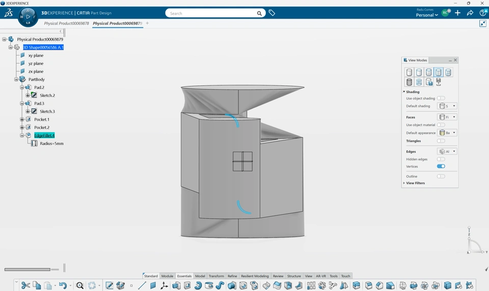 I have noticed that the Fillet Feature within Part Design in both 3D Experience CATIA as well as CATIA V5 has a weird functionality.