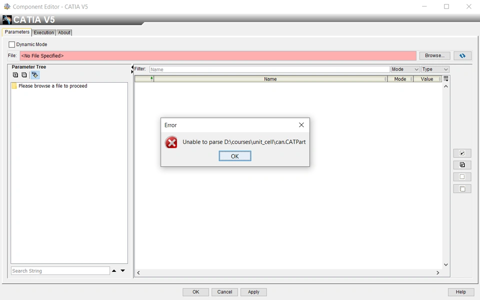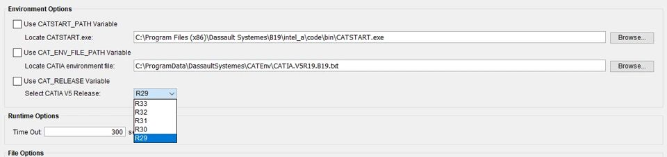 I have used Abaqus, SolidWorks and some other components with Isight 2024, but this is the first time I am trying to use CATIA V5 component. I have succesfully selected my CATSTART and environment file path. However my CATIA version is not listed as an option. So, I am getting the following error if a choose e.g. R29 alternatively. How can I achieve using CATIA V5 R19 with Isight 2024?