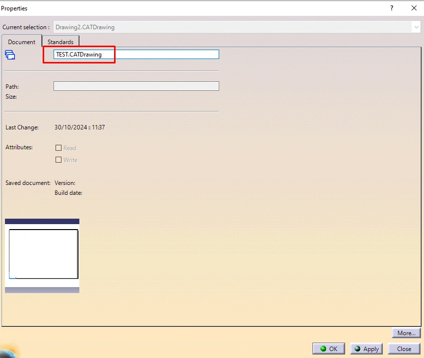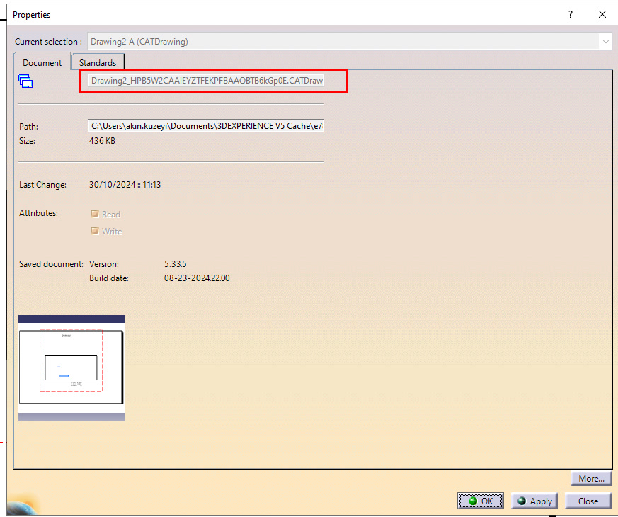You can see that I can change the name of the technical drawing via Document Properties( Picture3). However, as you can see, Picture 1 does not allow filling the document properties field. The technical drawing that is not allowed occurs after saving to 3DExperience.