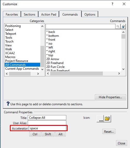 Collapse All command, which is one of the Tree Expansion commands in 3DExperience CATIA, does not work when I add a shortcut key.