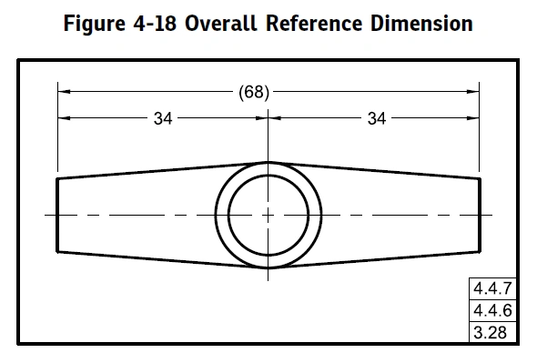Parentheses are used to enclose reference (ASME) or information (ISO) dimensions.