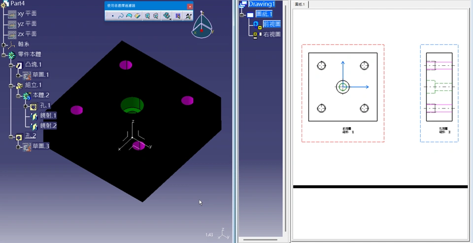 In right side view, if I display the hidden line, the hidden lines' color as the same as the 3d Hole feature.